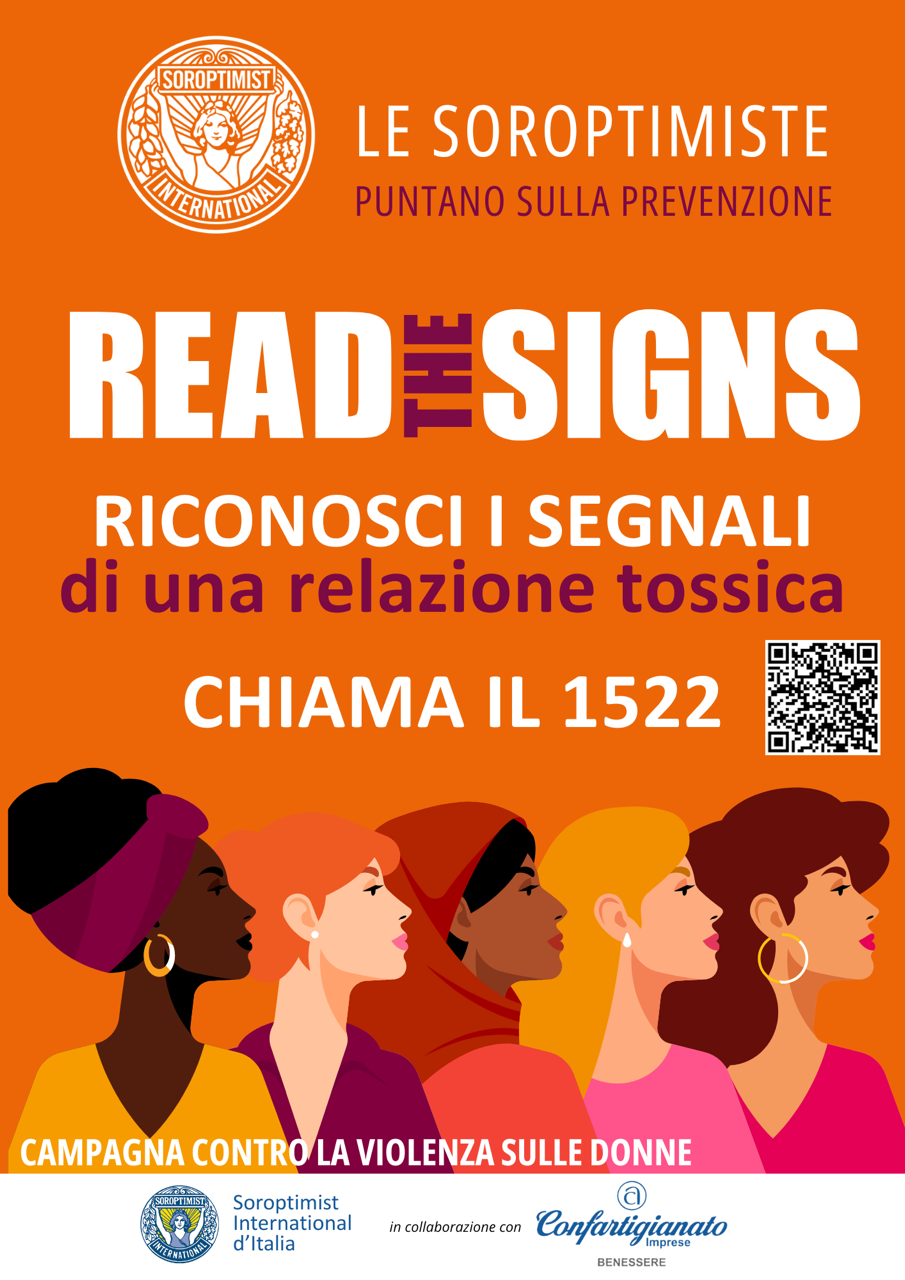In questo periodo Soroptimist attiva anche la campagna “Read the signes”, dedicata alla diffusione della cultura della prevenzione. L’obiettivo è sensibilizzare e prevenire comportamenti potenzialmente pericolosi — come gelosia, controllo, manipolazione e collera — che possono portare a relazioni tossiche e violente.